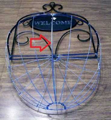 Hacer un pedazo de varilla de 1/8 pulgada de acero con un arco del mismo diámetro que el arco en el paso 1. Soldadura entre el arco en la parte original goma negra de la estructura y el anclaje de la última etapa. Ver la flecha roja.
