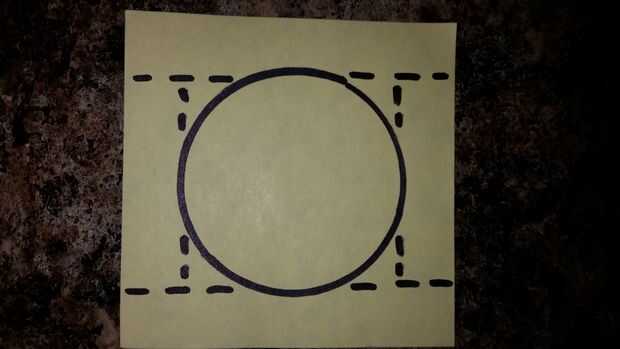 Centro de la parrilla de metal desplegado y traza el círculo con un marcador permanente. Sólo tengo fotos para mostrarte, pero si usted puede imaginar que la nota post-it es su chapa de 24 x 24, entonces usted no debe tener problemas siguiendo.