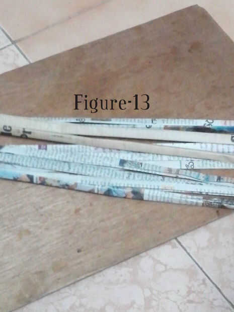 • En este paso, vamos a hacer las tiras de papel como se muestra en la figura -13 para conectar los anillos verticales. Estos generalmente actúan como bisagras para endurecer las paredes y evitar daños al producto.