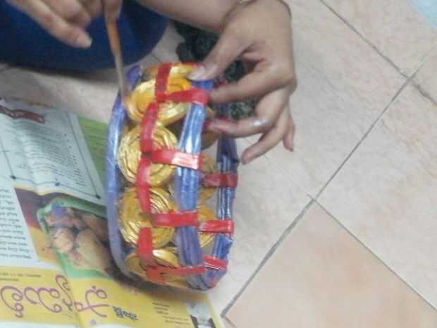 Enhorabuena has hecho una cesta rígida, hermosa y atractivo de su elección utilizando material constructivo simple "Papel".