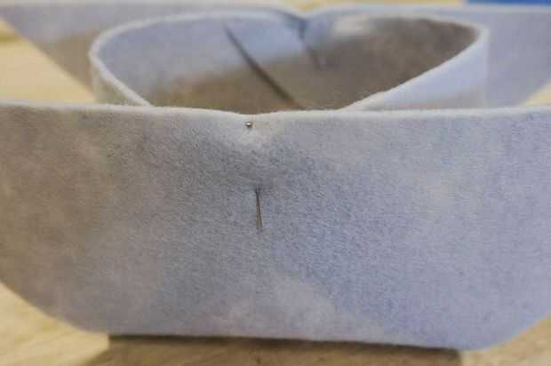 • Cuando todas las aristas muy bien uno al otro, pegar un pin por el lado externo y la esquina ya cosida del interior.