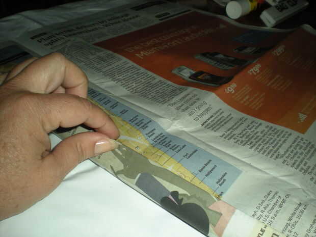 trece dobles páginas de periódicos de tamaño, tijeras, un palo de pegamento y una pistola de pegamento con pegamento, algunas horquillas o clips bolsa, pintura (su elección) y un pincel.