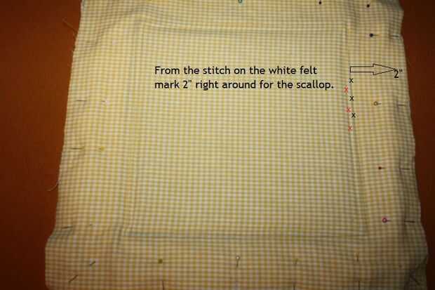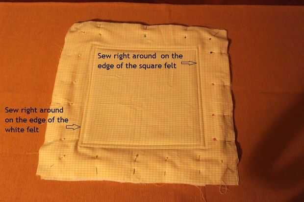 Del mismo modo hacer una puntada recta todo el suqare en la tela en la parte superior el blanco se sentía.