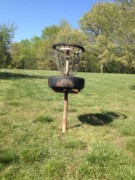 2: tomar su amarra y lazo de todas las cadenas sobre el mismo y se conectan alrededor del poste en la parte inferior. Dejar espacio para las cadenas para poder moverse cuando golpeó por los discos. Para hacer el sonido de chinging que se escucha cuando los golpes del disco las cadenas se pueden conectar las placas de metal alrededor de la brida hasta cuando, las cadenas puede chocar el metal y crear la chinging sonido.