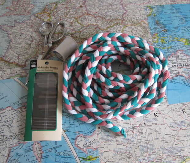 Tengo aproximadamente 24 pies de la trenza de tres camisetas, así que no está mal en absoluto!