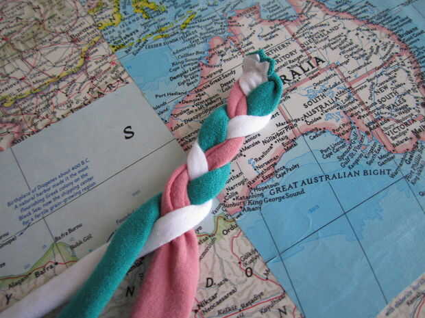 Si usted desea continuar trenzado pero es acerca de quedarse sin hilo, coser tres líneas nuevas de hilado de la camiseta a los extremos de la de la trenza. De esa manera obtendrá la trenza plana y agradable. :)