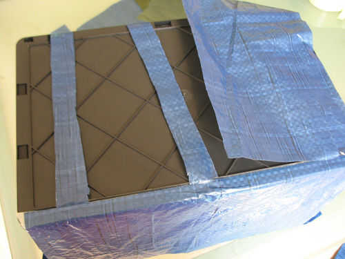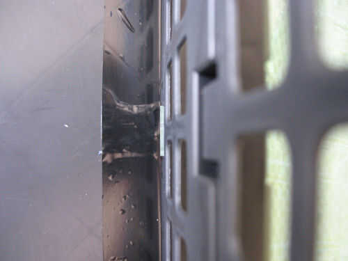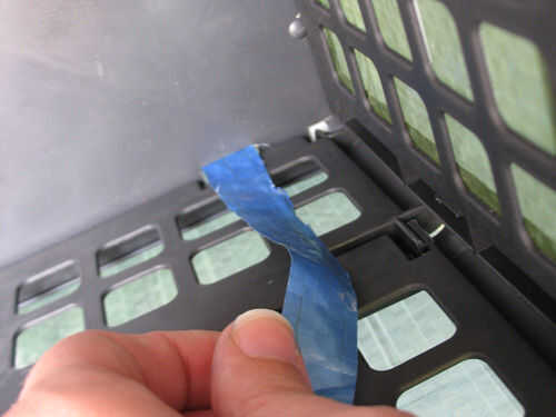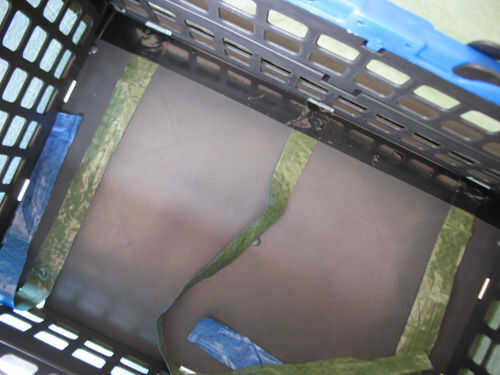 En la parte inferior está ahora firmemente y limpio. Pero en el interior de la cesta en la cinta los 3 trazos apretados hasta el fondo con alguna cinta aislante negra. Que el corte de las piezas restantes de plástico.