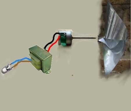 una cerveza puede molino de viento se monta directamente en el tornillo como eje de un motor paso a paso de unidad de disquete (aquella que posiciona las cabezas de lectura/escritura) y este motor se une a la parte delantera de la canasta, donde cogerá el viento. la salida de los pasos va en un transformador, un 240:12 paso por transformador, pero en el extremo de 12v, por lo tanto sirve como un x20 paso por transformador, como un blanco led necesita 3,3 v y salida de este paso a paso en el viento por la velocidad (esto era un viento simulado) era sólo unos 100mV.