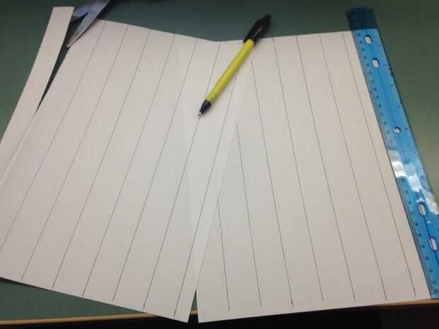 Se necesita 2 pedazos de promedio de 8.5 "X 11" papel de la impresora y una regla. Utilizar la regla para hacer 16 tiras de papel que son 1" por 11"
