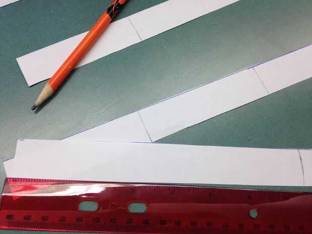 Use la medida de la regla 3.5" de ambos lados de 8 de sus tiras. Tienes que esto Marque con un lápiz en los 8