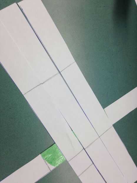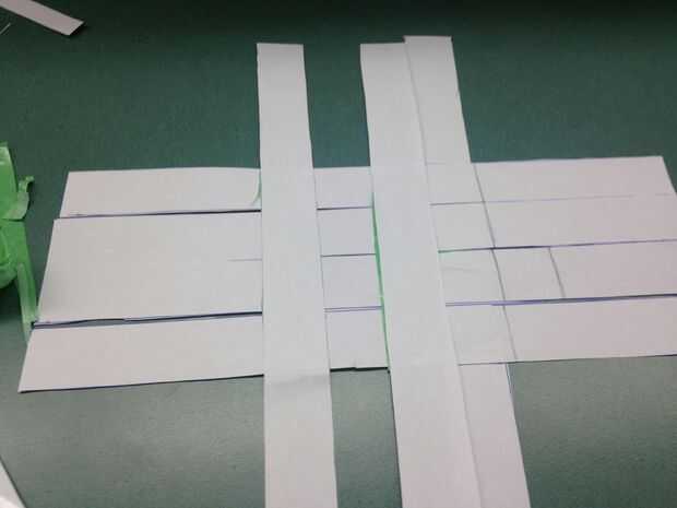 Pegamos las 4 tiras con que 4" centros de satisfacer para que las 8 tiras juntos parecen un símbolo más. Al colocar las tiras con cinta Asegúrese de poner dos y dos bajo las tiras del llano.