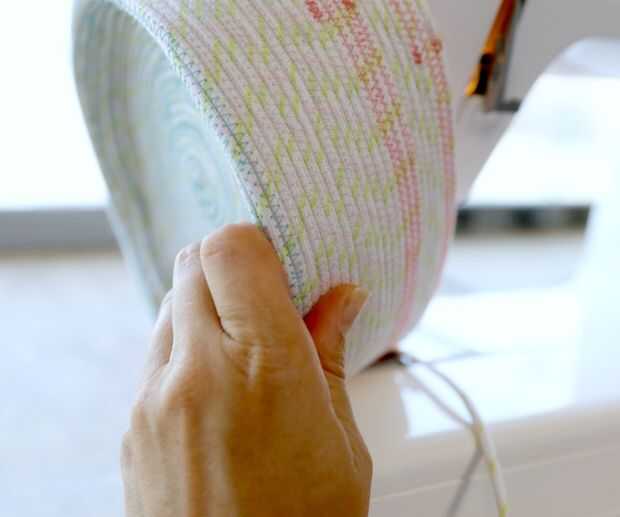 Pasa el hilo otra vez aproximadamente 2 1/2" en la pared para añadir un par de rayas de color rosa.