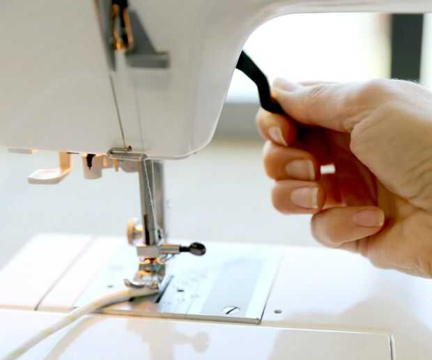 Presionar suavemente el pedal, ir y venir sobre la bobina pequeña con la puntada hasta que la forma está asegurada. (como en la foto)