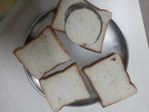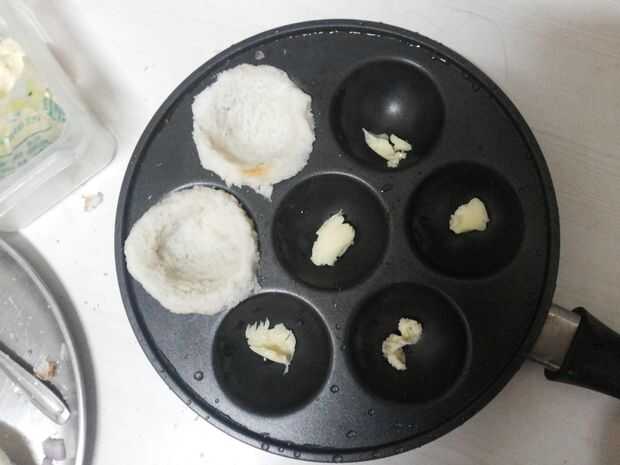 Precalentar una bandeja de torta de la taza vacía durante 1 minuto. DIP estos cut outs rápidamente en la salsa y colocar en la bandeja de la torta de la taza (que debe ser cubierta con mantequilla)