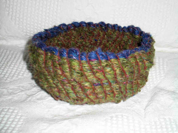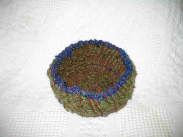 La cesta mide aproximadamente 6 pulgadas a través y 3 pulgadas de profundo.