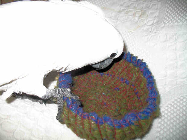 Mi cacatúa Gwen piensa que es un gran juguete porque ella puede agarrarlo y tirarlo todo.