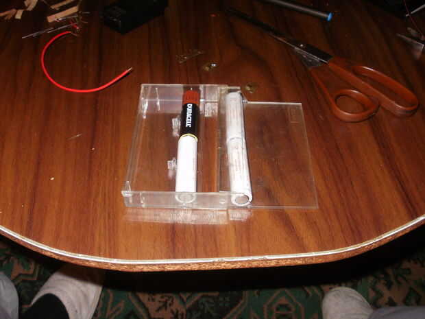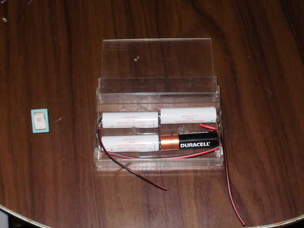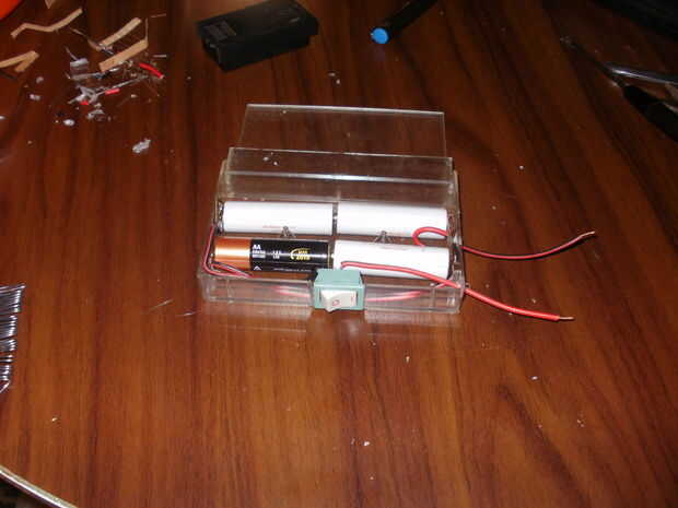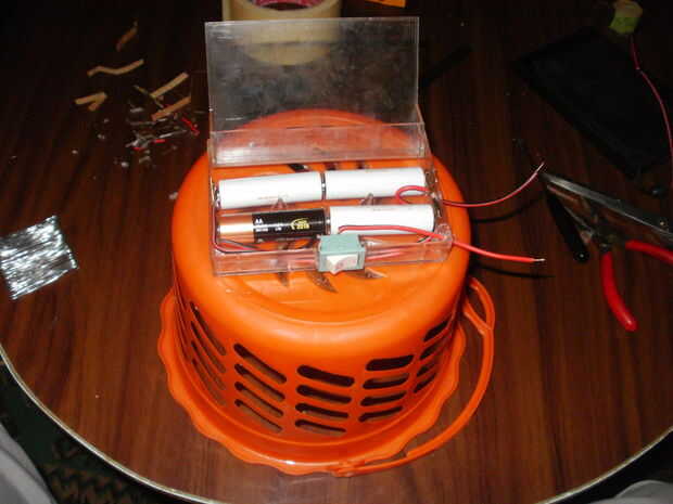 La caja que he utilizado es de una vieja caja de cassette porque estaba encajando perfectamente para el tamaño de las baterías. Interruptor adicional y algunos cables y hemos puestos en la parte inferior de la canasta con un alambre.