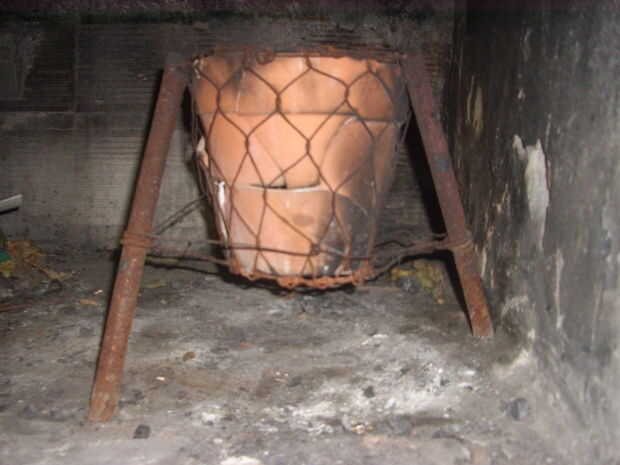 Hace años que construí un aparato para hacer brasas, basados en un pote de cerámica estándar, que me dio muy buen resultado. Es como una tolva que alimenta en la parte superior y se vacía por abajo. La ventaja de este método es que el carbón se obtiene está bien hecho, y no por lo que embriaga de riesgos comunes para el uso de carbones "crudos", el monóxido de carbono que desprende la carne y después de comer el asado uno tiene pesadez y dolor de cabeza. El único inconveniente es que inevitablemente la olla que se va agrietando con el calor y después de 5 o 6 años de vida productiva es un rompecabezas sólo compatible con alambre de malla lo rodea y en el más mínimo resbalón se extiende por el piso de la parrilla. Debido a la construcción de mi propia barbacoa (