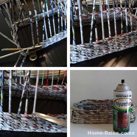 Hay más instrucciones para tejer con papel periódico y en www.Home-Dzine.co.za.
