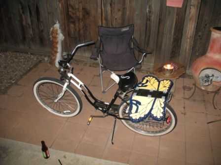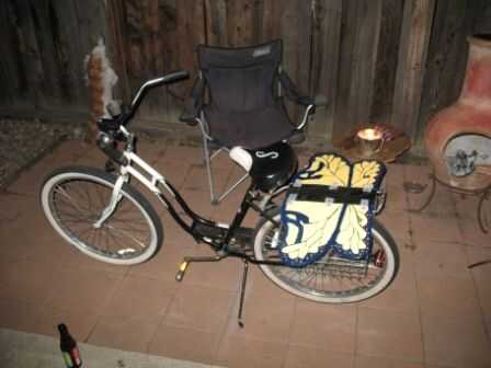 Compré esta bicicleta de una velocidad de Schwinn de un querido amigo y ex compañero de piso cuando vivía en Nueva York. Ahora estoy en una bicicleta y 14 millas/día promedio. Porque mi estado actual puede promedio de 20 grados F cambios de clima de día a noche, decidí que necesitaba algunos almacenamiento a bordo para suéteres y similares. La bicicleta vino equipada con alforjas de alambre, pero para garantizar mi seguridad y evitar daños de Monzón a agentes almacenados en bolsas de sillín dijo, decidí agregar cierre las tapas y los forros de tela.