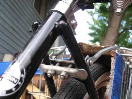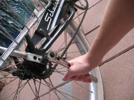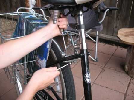 8. quitar cestas bicicleta. Ahora es el momento para tu moto de las cestas es quitando el hardware bajo el asiento y quitar la tuerca de la rueda trasera. Te canastas debe salir bastante fácilmente, a menos que tenga un compañero muy útil que llevó su rueda trasera en con fuerza sobrehumana, en cuyo caso te podría luchar un poco.