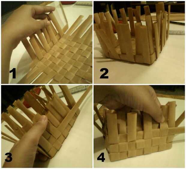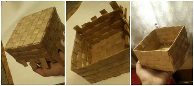 En primer lugar, tome 16 tiras y dividirlas en la mitad. Coloque 8 tiras vertical y 8 tiras horizontalmente como se muestra en la primera foto de este paso. Apretar el tejido con cuidado para asegurarse de que todos los lados son incluso. Ahora construir los lados. Tomar una tira y van alrededor de los lados como se muestra en la imagen. Mantener cerca de la mitad de 1 pulgada de la tira para doblar en el extremo. mientras dobla la parte restante de la tira de utilizar cinta adhesiva o pegamento para asegurarse de que no salen. La cesta del papel cuadrado está lista!