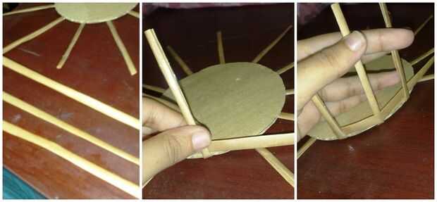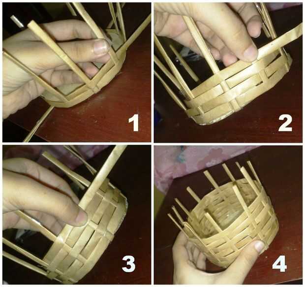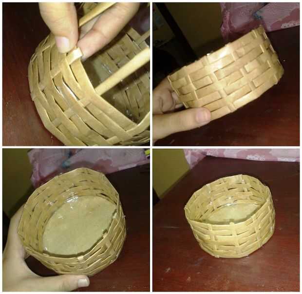 Para hacer esta cesta vas a necesitar una ronda pedazo corte de cartón y tiras de 0,5 cm de ancho. Utilice pegamento para pegarse 12 tiras con la placa redonda de cartón. Ahora sostienen pocas tiras como se muestra en la imagen. Tomar otra tira y empezar a tejer por dando vueltas alrededor. Después de tejer la primera tira usted no necesite sostener el papel tiras para arriba mientras permanezcan rectas ellos mismos. Seguir tejiendo alrededor de la cesta, pero mantener cerca de la mitad de 1 pulgada de las tiras al final. Las partes restantes de las tiras dentro del doblez y pegar. Puede utilizar papeles de extras para hacer las fronteras. Esta cesta resulta realmente Linda!