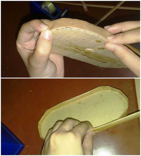 Corte una forma ovalada de papel grueso o cartulina. Ahora toma la tira y pega con la placa de cartón con forma oval (como se muestra en la imagen). Iniciar arrollar con cuidado y seguir pegando la tira hasta que esté acabado. Cuando la cinta llega a su fin doble interior y utilizar pegamento para asegurarse de que no sale.