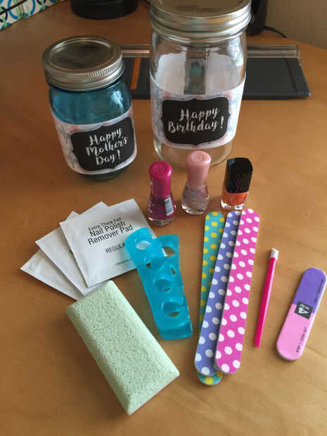 Kit de pedicura: Esmalte de uñas (1-3 botellas), clavo clippers, nailfile, separadores del dedo del pie y cualquier otro elemento de cuidado de uñas crees que podrían disfrutar de