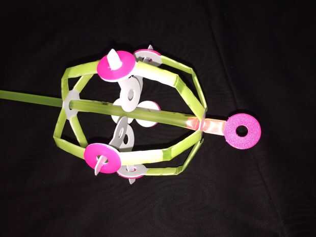 Strawbees son piezas de plástico que pueden utilizarse para conectar Pajitas para bebidas de tamaño estándar. En un espacio local de hackear intentamos construir una catapulta con estos conectores, pajillas, gomas y otros artículos misceláneos.Mi dis
