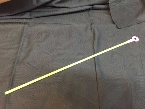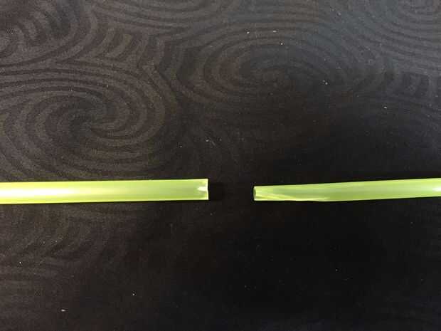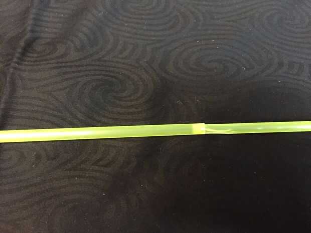 Un poco apriete el extremo del otro extremo de la paja y deslice firmemente en el extremo de la paja 2. Esto hace una paja larga. Felicitaciones, tienes una simple varita! Tiempo de glitz up! Situado a un lado por ahora.