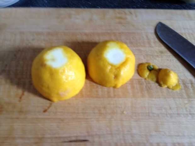 Esto puede tomar un poco de práctica. Los limones son diferentes y algunos tienen un núcleo muy fino que dificulta este proceso. Que tenga que raspar el interior hacia fuera para conseguir cualquiera de los bits restantes. No te preocupes aunque, como usted consigue la mayor parte de las entrañas hacia fuera mientras no piercing en cualquier parte del limón, eres bueno para ir.