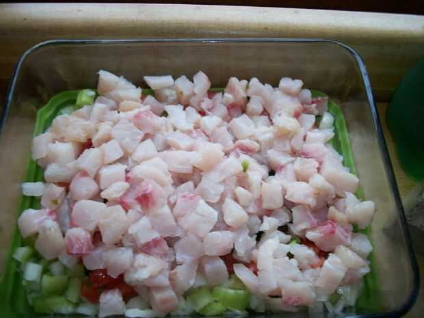 Grueso de pescado decide cuánto tiempo tomará para desnaturalizar en el ácido. Piezas pequeñas se cocinan rápido. Para mi receta queremos peces que es opaco o casi opaco. Se parece que fue cocinado con calor.