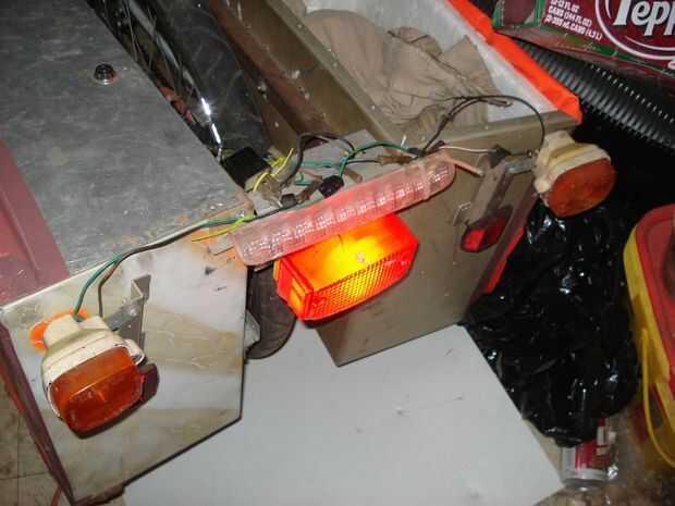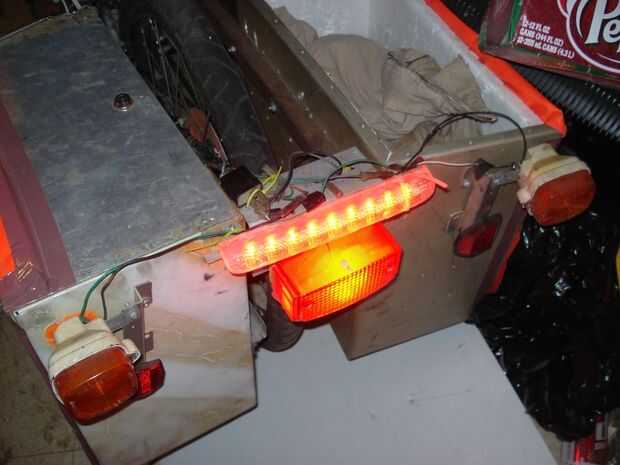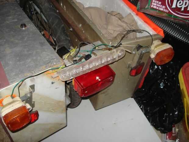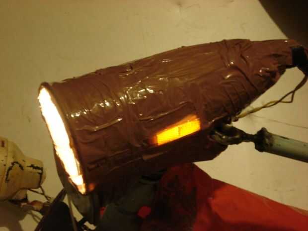 En cuanto a montaje de las luces, a veces es posible sólo salirse con la grabación, si no te importa la mirada de él. :) Mi linterna, siendo construida con dos tazas anidadas junto con lo CFL en la parte inferior de ellos, sólo se graba en el vástago de frente, hasta que yo venga con las partes para un mejor montaje de reflector y enfoque. :) Algunas fotos de ella como lo es ahora, con reflector pedal pegadas a los lados para las luces de posición laterales, se unen por debajo con el resto.