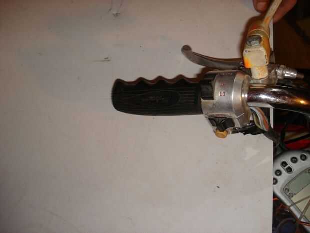 Usted probablemente querrá una buena manera de activarlas y Utilizar los controles de la misma moto Honda para mi Faro/piloto trasero, intermitentes y cuerno. No tiene sólo un interruptor para las luces, pero tiene un interruptor de los faros viga alta-baja, reutilizar fácilmente simplemente no hacer nada para luz de cruce, pero para cambiar faro delantero y luz trasera/off (conexión/interrupción de la línea de retorno del adaptador de CA + CFLs a la batería) al mismo tiempo. Este interruptor no es realmente apto para 60V, pero previamente probado con sobre 120VDC usar todos mis SLAs en serie, además de una carga resistiva, antes de usar con el CFL.