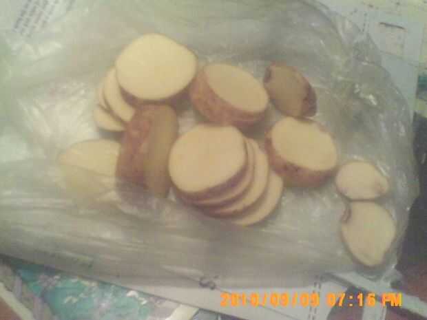 Sliice la patata en 1/2 secciones y pongo en una olla.