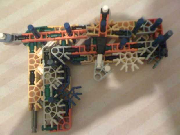 bueno, este es mi segundo intento de una pistola de asalto. Se ve un poco como un combo de shadowninja/IAC AP. Éste utiliza revistas extraíbles. Barras de brotes verdesPros-verdadero gatillo-extraíbles mags (ampliables)-30-40 pies-se ve apretado-tamb
