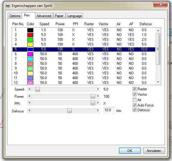 A veces cuando quiero ahorrar tiempo prefiero no graba pero a kisscut con el lasercutter. Kisscutting significa que se corta demasiado rápido para cortar a través del material, así que usted consigue un sutil grabado. Pero cuando kisscut con el láser centrado perfectamente la línea es muy fina y sutil... Puede hacer las líneas más gruesas defocussing su láser. ¿Estaba ya familiarizado con este truco? Si no: probar y disfrutar!