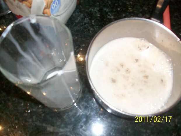 Poner la mezcla en el vaso y luego añadir el reloj tapioca ellos ir a la parte inferior del vaso, añadir la paja y la bebida, (pensé en mi imagen sería mejor sin la paja)
