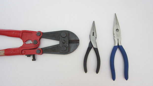 Usted también necesitará algunas herramientas básicas. Necesita un taco para envolver el cable alrededor. Necesitas cortadores de alambre o cuchillas para cortar los anillos individuales del perno. Para doblar los cables en su forma final, tendrá dos pares de alicates de punta.
