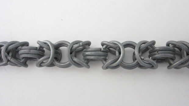 Esta cadena es similar a la cadena de serpentina, excepto en lugar de torcer continuamente la cadena en una dirección, cada anillo además se gira en sentido contrario. Esto hace que el patrón alternativo hacia adelante y hacia atrás en vez de hacer una espiral.