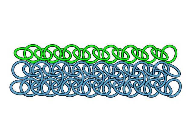 2. ahora agregamos los primeros anillos, saltar el aro final y pasar el primer anillo a través de los ojos de los dos anillos en ambas cadenas.