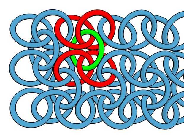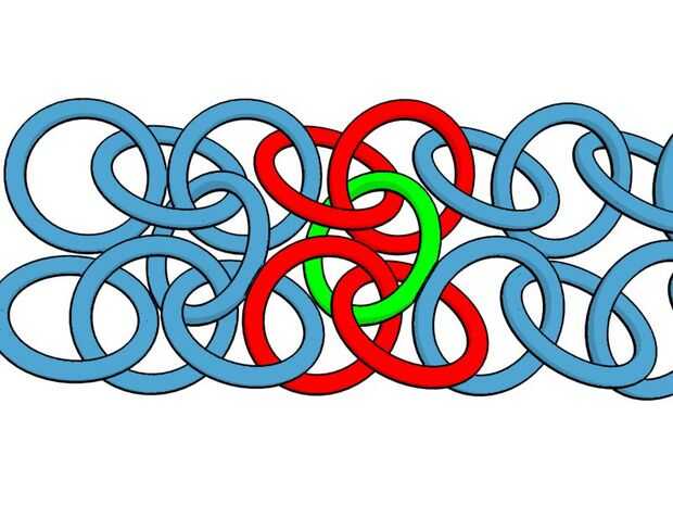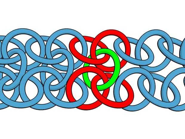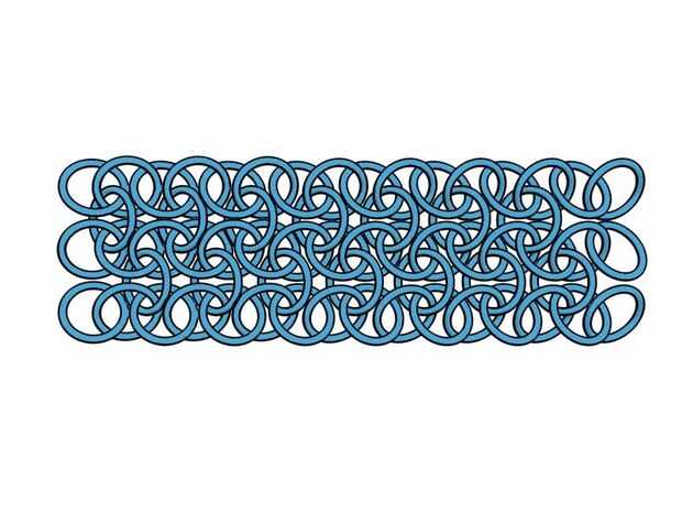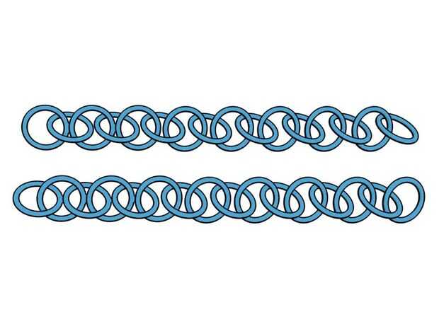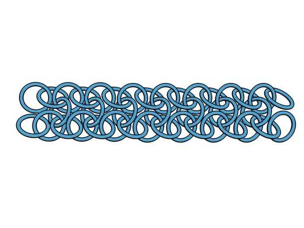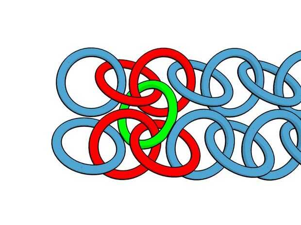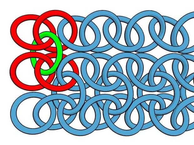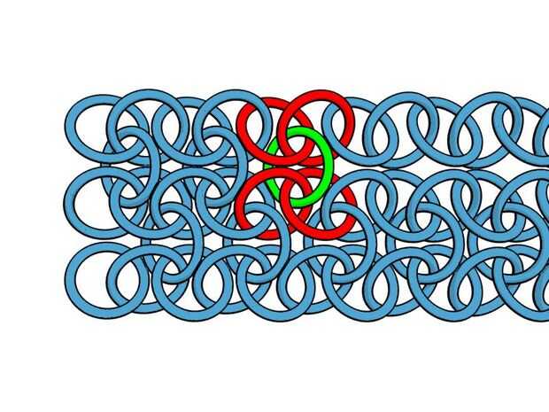 Ahora añadir los anillos primera, saltar el anillo de final y pasar el primer anillo a través de los ojos de los dos anillos en ambas cadenas.