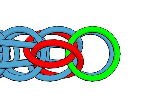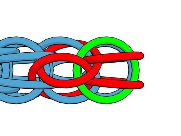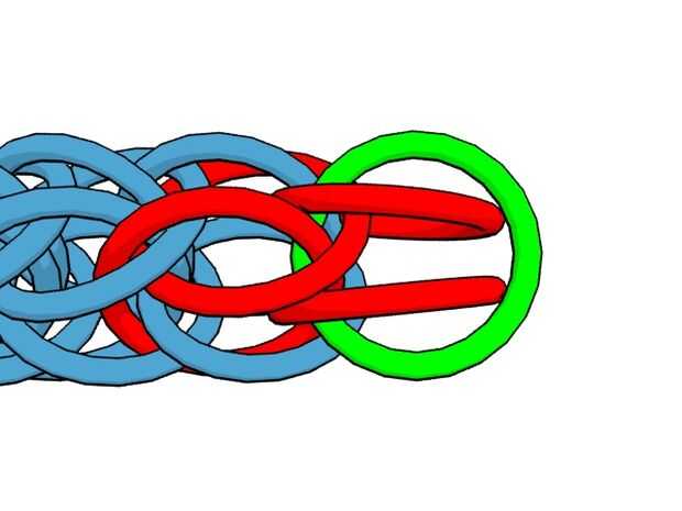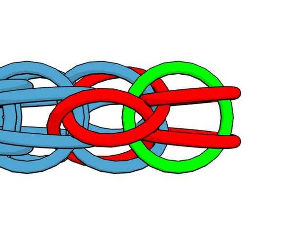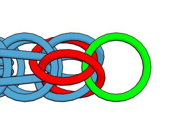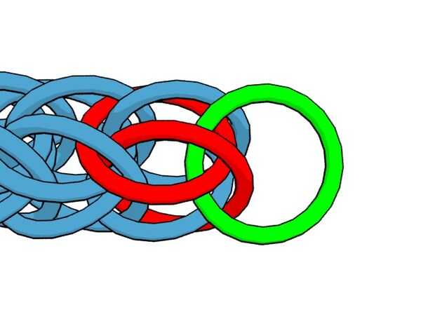 volver a paso 4-5 gire 90 y añadir su anillo alrededor del ojo y a través de usted antes de dos anillos.