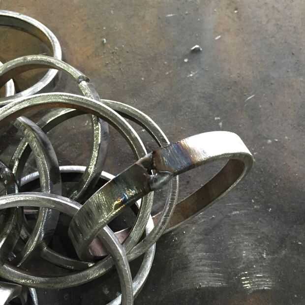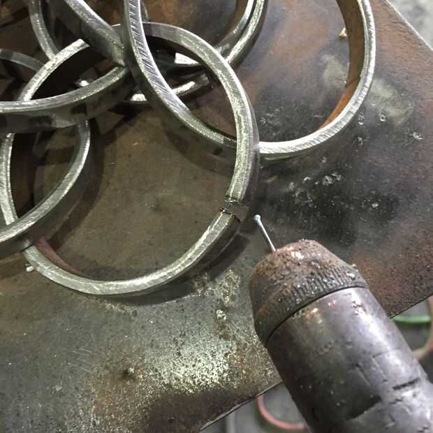 Ahora, cada anillo del salto tendrá que ser soldado, viro a cada lado y entonces uno en la parte superior.