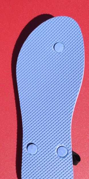 Una vez que tengas todas las tiras construidas y a través de los orificios de la sandalia, es hora de pegar hacia abajo.