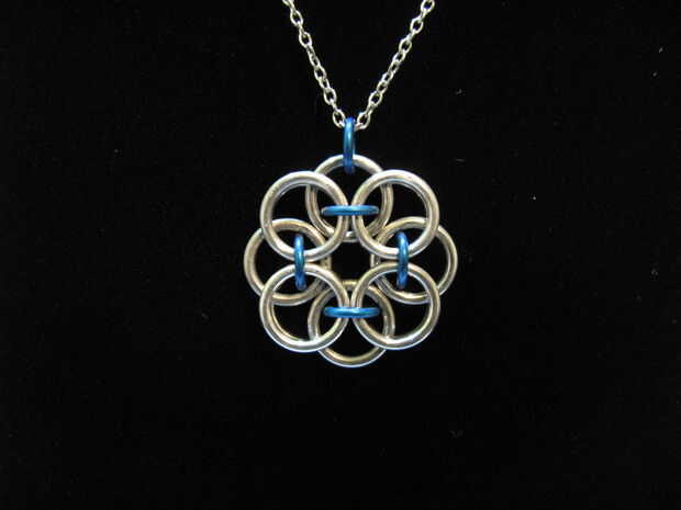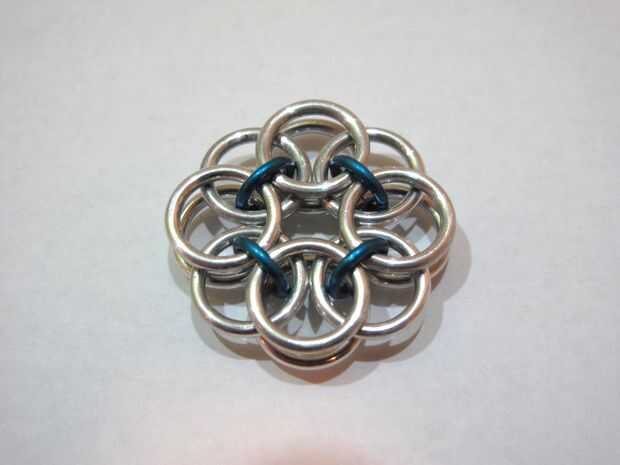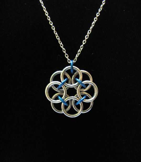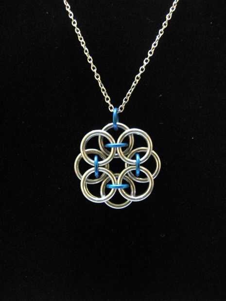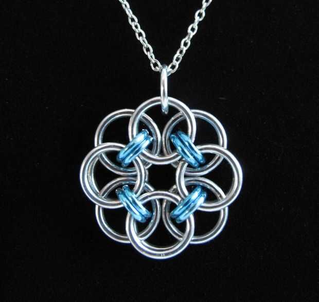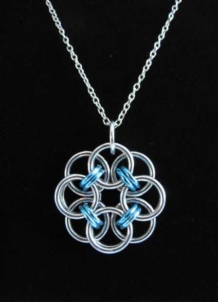 Me vino la idea para esto después de ver la Rosa de Quantum del Buda azul un poco tiempo atrás, y quería crear una versión más simple, más limpia así como el respeto a sus derechos de propiedad intelectual a que el diseño. Lo bueno de maille es que siempre puede Agregar o restar elementos para todos los gustos, haciendo cada diseño su propio. Además, como esto era un día de la madre presente para mi mamá el año pasado, que quería hacer algo especial para ella :) Y que, sólo he hecho un colgante con anillos de esos hermoso robin huevo azul.