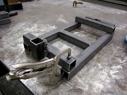 Organizar la 9 en piezas cuadradas sobre el 14,5 en pedazos y soldadura de tachuela 2 puntos en todas las esquinas, y luego volver y completar las soldaduras a través de las juntas. El pedazo de centro de soldadura, 5 mango de Polo se soldar esto similar a cuando se soldó con autógena los postes.
