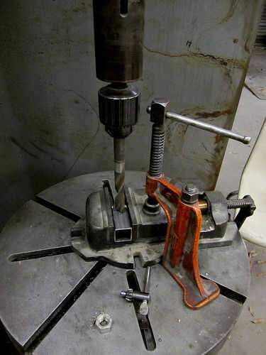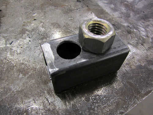 Taladre un agujero más grande que el agujero de la de tuerca 1.25 en y 2,5 en stock cuadrado, en la 2.5 en él será en el centro de la mitad superior de la pieza, imaginar que la mitad de ella no está allí y perforar en el centro de la mitad superior.