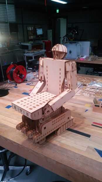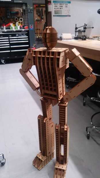 材料は2.5mmのMDFのみで、接合パーツとや関節部も全て切り出しによってまかなっています。